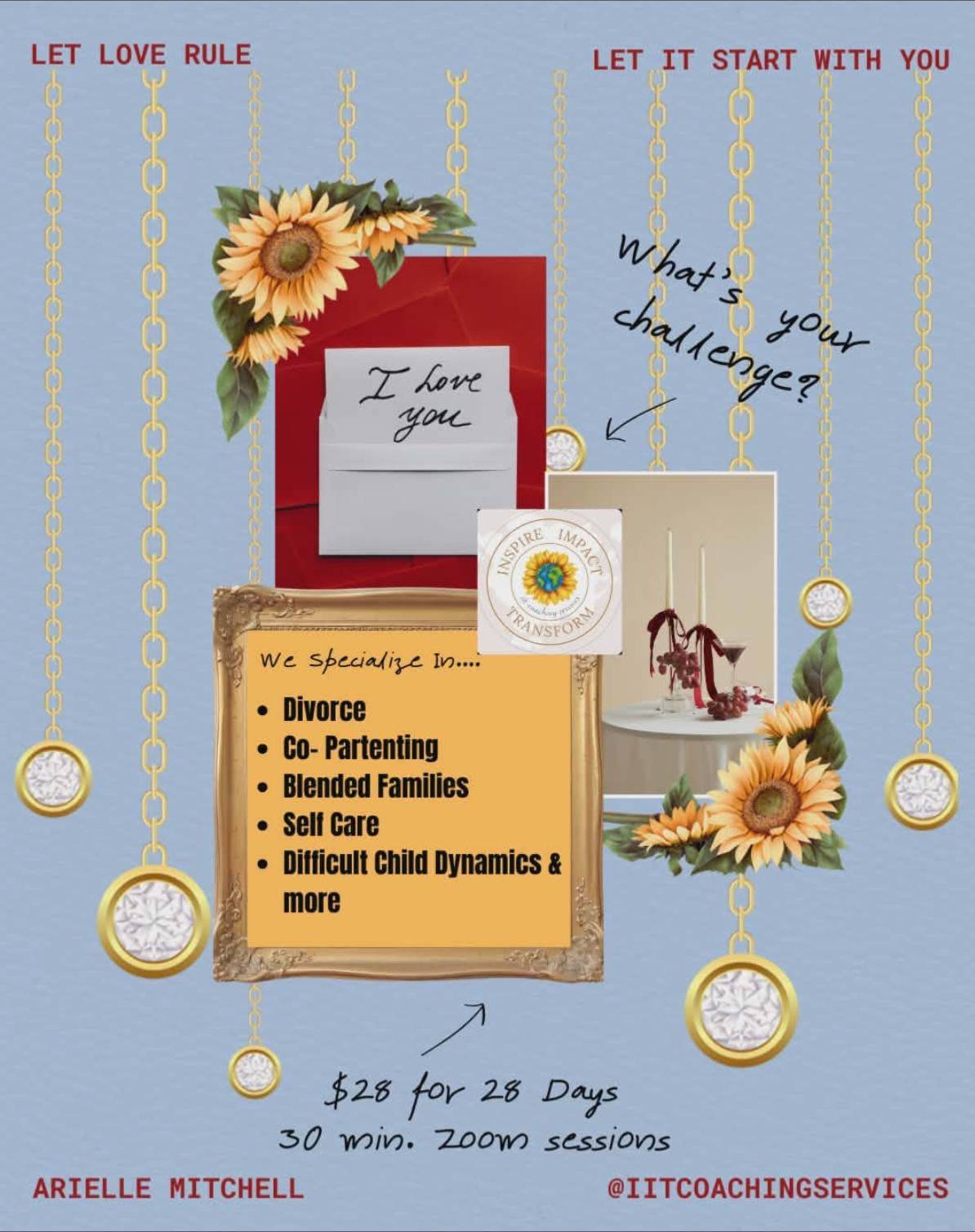 Hello! I hope this message finds you well! We all need support at some point in our lives, and I'm here to offer guidance. Whether you're facing challenges in co-parenting, navigating a new divorce, or simply feeling uncertain about your journey. I, Coach Ari am committed to walking alongside you every step of the way. Join me for an upcoming event where we'll explore how to overcome these hurdles together. My aim is to empower you with personalized coaching that you didn't know you needed....